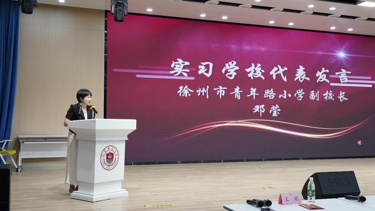 实习学校代表—徐州市青年路小学副校长邓莹介绍,学校实施 “双导师制”,为实习生配备校内校外导师,建立常态化沟通机制,确保实习顺利推进。学校秉持“真实课堂”理念,借助人工智能赋能教学,倡导反思文化,搭建多元交流平台,助力实习生专业成长。