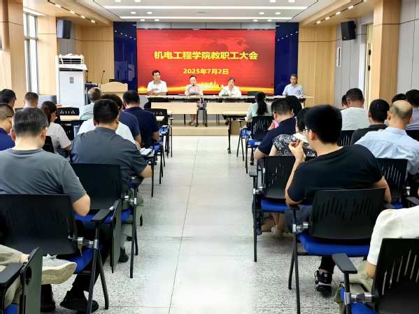 7月2日下午,机电工程学院召开全体教工大会,总结学期工作开展情况,欢送邢邦圣教授荣休,学院全体教职工参会,院党委书记姜南主持。