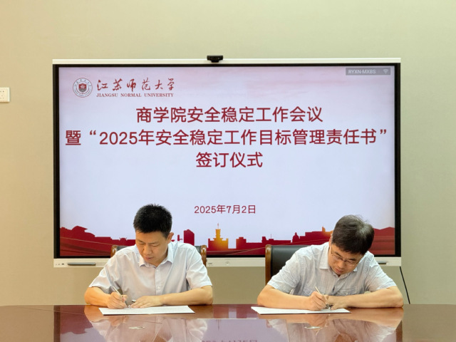 会议从意识形态安全、心理安全、网络安全、消防安全等方面通报了2024年度及2025年上半年学院安全稳定工作实施开展情况,布置2025年下半年安全稳定工作,并签署2025年安全稳定目标管理责任书。钱程指出,要始终坚持以高度的政治责任感和使命感,坚决落实安全稳定各项部署安排,为做好安全稳定工作提供坚强保障。对于各责任单位和责任人,提出三点要求:一是要提高政治站位,深化认识,切实扛起安全责任大旗;二是要聚焦重点,精准发力,筑牢学院的安全防线;三是系统谋划,久久为功,着力构建安全稳定长效机制;希望大家以切实举措推动学院形成“大安全”格局,为学院高质量发展营造安全和谐稳定的环境。