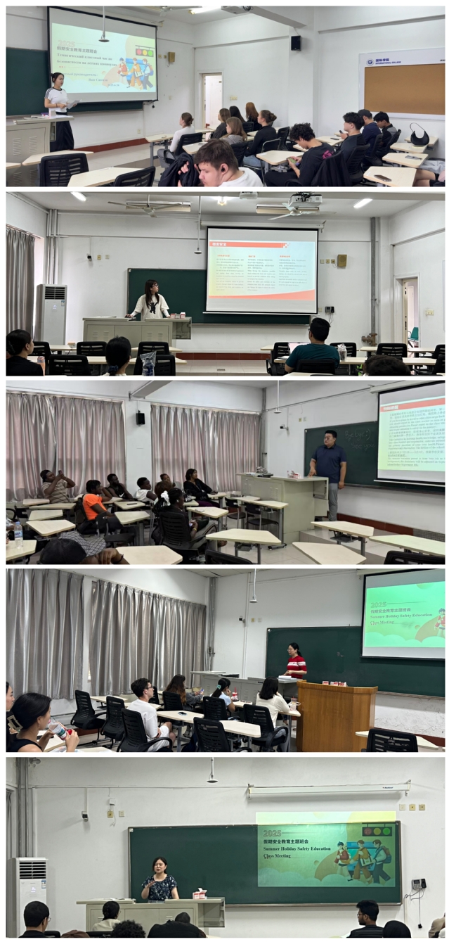 6月26日至30日,学院组织各班级召开暑期安全教育主题班会。班主任结合国际学生特点,重点围绕宿舍安全、交通安全、防范电信诈骗、防溺水及用火用电规范等内容,通过案例分析开展专题教育。针对不同国家学生的文化背景差异,特别就中国法律法规、校规校纪再次进行解读。