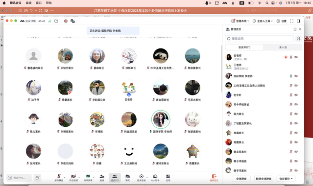 为帮助赴俄学生家长深入了解赴俄留学相关注意事项,提前规划在俄学习生活,7月7日晚,我院召开2025年本科生赴俄留学行前线上家长会。学院党委副书记孙志强、专职辅导员史安妮、教务秘书王佳、往届在俄负责学生及2025年计划赴俄的全体学生家长共同参会。