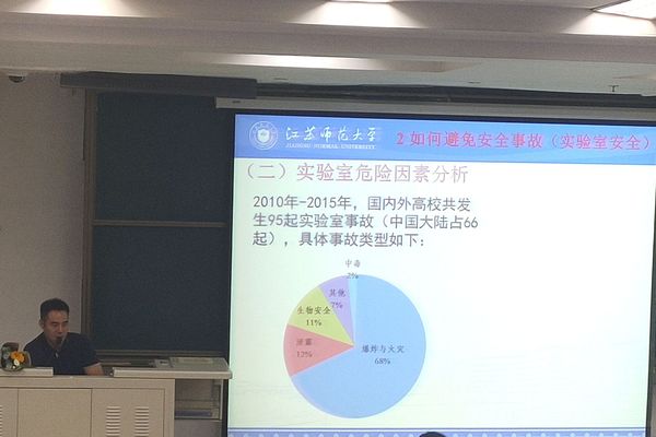 讲座伊始,许继安老师以如何避免安全事故为切入点,从大安全观的树立、海因里希理论、各类事故防范要点三个方面开展论述。从消防安全、实验室安全、禁毒教育、财产安全等多个方面强调了安全教育的重要性。接着,许老师又针对该如何做好安全工作这一问题进行解读,指出大学生应当知行合一,筑安全基石;志存高远,树人生典范,通过结合各种身边的真实案例,强调天上从来没有掉馅饼的事。最后,许老师还介绍了目前我校的治安防范工作进展,希望在学校积极开展学生安全工作的同时,学生自己也要重视安全教育。