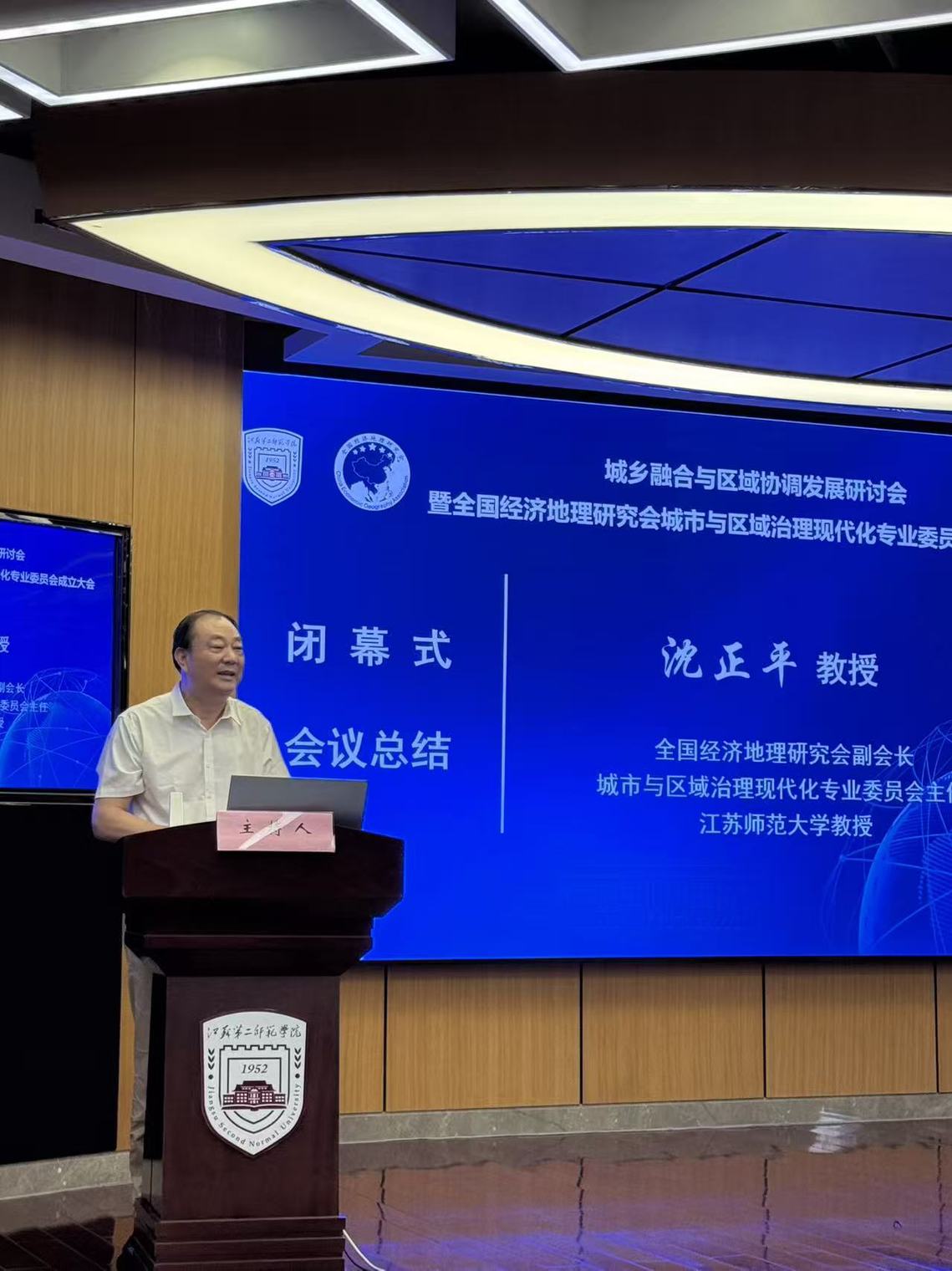 在大会闭幕式上,沈正平教授作总结发言。他指出,本次会议汇聚了全国经济地理学及相关领域的众多知名学者,围绕城乡融合与区域协调发展等前沿议题展开了深入研讨,交流广泛、成果丰硕,成功构建了一个高层次的学术对话平台,有效推进了中国经济地理学理论与实践创新,并与国家及区域重大战略实施实现了深度融合,对推动相关领域科学发展具有重要影响。
