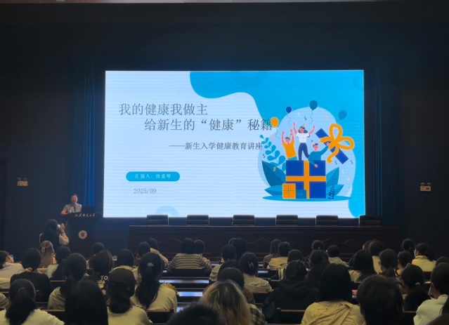 面对从中学到大学的过渡阶段,张素琴特别提醒新生关注心理调适与生活适应问题。她指出,环境变化、学业压力、人际交往等挑战可能对身心健康带来影响,呼吁大家主动适应、合理安排作息、学习压力管理、保持积极心态,真正做到“我的健康我做主”。