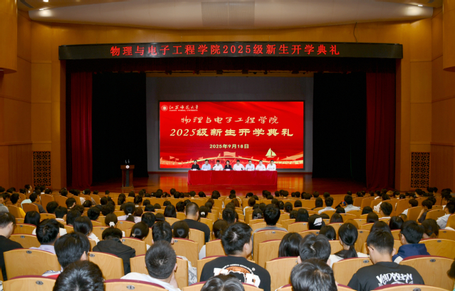 9月18日下午,物电学院2025级新生开学典礼在马可音乐厅隆重举行。领导班子成员、各系主任、新生班主任和全体辅导员与484名新生共同参加活动。典礼由院党委副书记赵明主持。