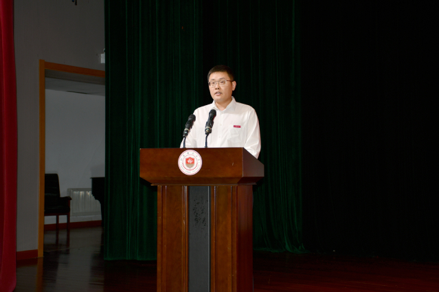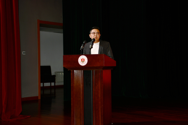 教师代表姜鹏副教授在发言中巧妙运用物理学能量守恒定律、熵增定律、量子纠缠理论,鼓励新生要科学管理自我能量,勇于建立秩序,以积极姿态迎接更广阔的未来。