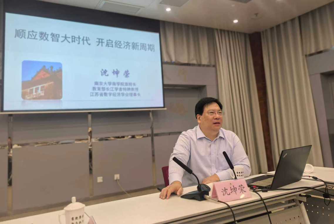 整场报告逻辑清晰、观点鲜明,既有对宏观经济形势的精准研判,也有对数智技术赋能发展的具体分析。互动环节中,参会人员就新质生产力培育路径、数智化转型实践难点等问题与沈坤荣教授展开热烈探讨,现场学术氛围浓厚,为后续相关领域研究与人才培养提供了重要启发。