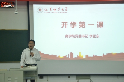 最后,学院党委书记李亚东为全体新生上开学第一课,寄语新生要以“勤学、修德、明辨、笃实”为准则,在商院汲取知识养分,涵养商业素养,成长为兼具家国情怀与专业能力的新时代商科人才。
