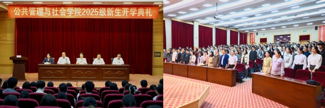 9月20日上午,公共管理与社会学院2025级新生开学典礼在敬文报告厅隆重举行。学院全体领导班子成员、各系主任、教师代表、新生班主任、全体2025级本科生、研究生新生参加典礼。仪式由党委副书记徐作锋主持。