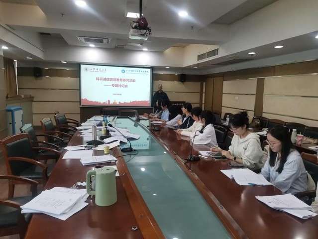 与此同时,学院各研究生学科组召集研二、研三学生开展科研诚信专题研讨会。与会的各位教授结合自身科研经历,围绕成果署名、数据处理、论文发表、学术合作等方面展开深入交流,引导学生们正视科研中的诚信风险,树立严谨治学的理念。