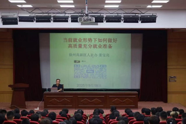 为应对当前复杂的就业形势,学院特邀徐州高新区人社办姜宝亮主任开展《当前就业形势下如何做好高质量充分就业准备》专题讲座。姜宝亮主任结合自身丰富的人社工作经验,从宏观与微观双重视角展开分享:一方面深入拆解当前就业市场的新特点 —— 如产业结构调整带来的岗位需求迭代、企业对“专才+通才”复合型人才的需求升级等,同时直面毕业生面临的“竞争同质化”“职业定位模糊”“求职信息不对称”等现实挑战,用数据与案例让学生清晰认知就业环境;另一方面围绕“高质量充分就业”核心目标,提供系统性指导:在职业规划上,建议学子结合个人兴趣、专业优势与行业发展趋势,制定短期目标与长期规划,避免“盲目求职”;在技能提升上,强调“专业硬技能+职场软技能(沟通、协作、抗压)”双重储备,鼓励通过实习、竞赛等途径积累实践经验,为大一新生逐一讲解实用方法,帮助学生少走弯路。本次讲座的举办为新生学子合理开展职业生涯规划锚定方向,助力其在未来求职中实现“人岗匹配”、彰显个人职业价值。