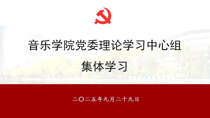 9月29日上午,音乐学院党委理论学习中心组举行了2025年度第九次集体学习,学院党委委员、领导班子成员参加学习,党委书记高小平主持学习。
