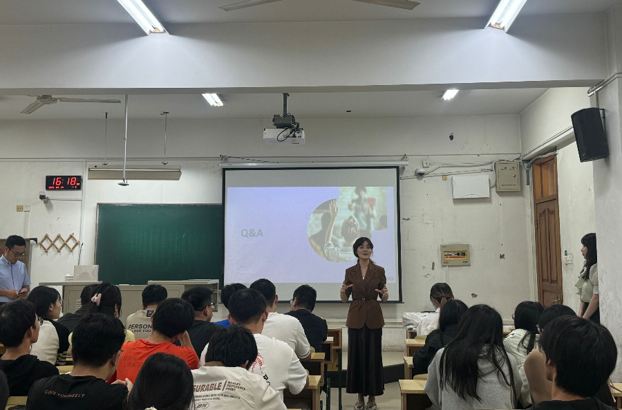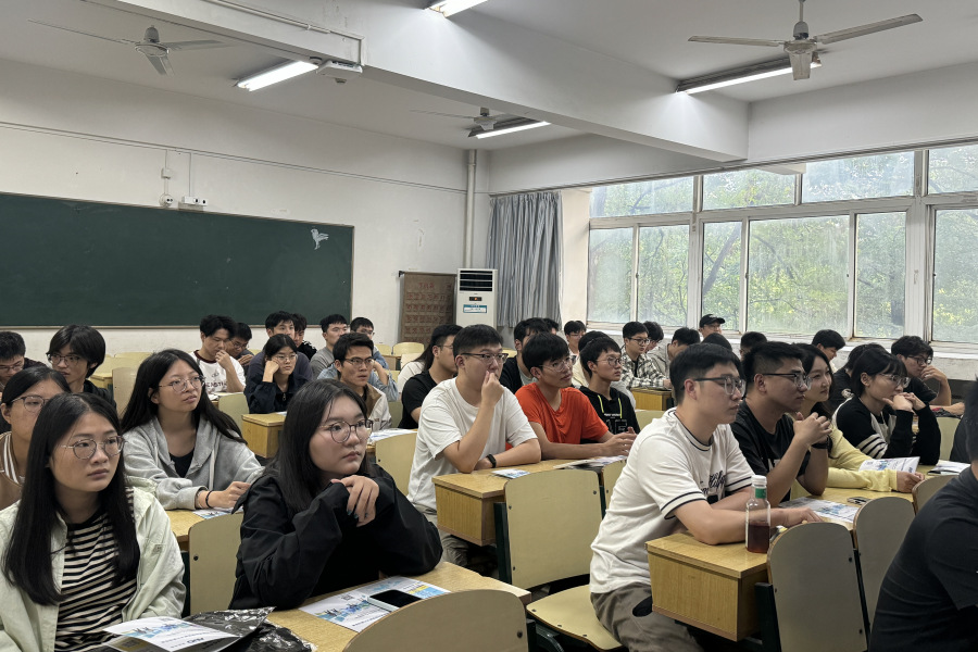 宣讲会上,友达光电(苏州)智能制造总监侯爽系统讲解了企业发展历程与核心竞争优势。在岗位介绍环节,智能制造经理石卫祥详细解读了2026届校园招聘需求。人力资源经理敖琴介绍了公司的薪酬福利体系和人才培养体系。与会毕业生与企业招聘团队进行了互动。