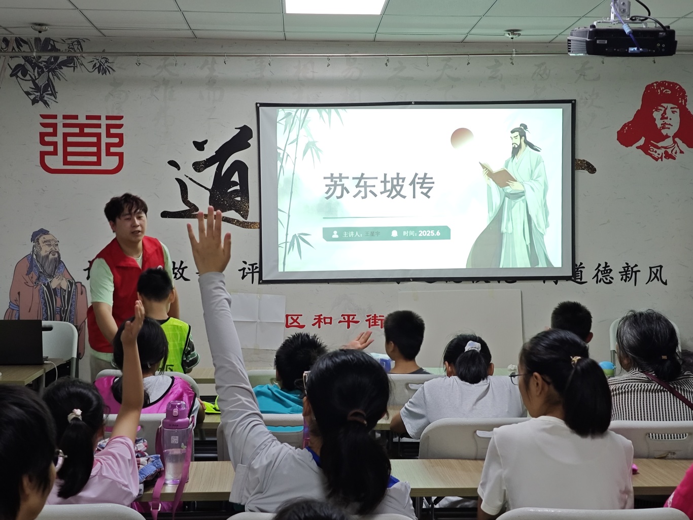 “一滴水可以见太阳,一个三苏祠可以看出我们中华文化的博大精深。我们说要坚定文化自信,中国有‘三苏’,这就是一个重要例证。”习近平总书记的话语为我们指明了方向。在苏轼文化研学活动中,志愿者小老师带领孩子们走进苏轼的世界,通过故事分享、诗词朗诵等形式,感受苏轼的文学魅力和人格魅力。从“大江东去,浪淘尽,千古风流人物”的豪迈,到“不识庐山真面目,只缘身在此山中”的哲理,孩子们在诗词中领略苏轼的才情与智慧。苏轼一生无论身处何地,都能保持乐观豁达的心态,为百姓谋福祉。这种东坡精神深深感染了孩子们,让他们懂得了在面对困难时要坚强乐观,要有担当和责任感。此外,志愿者们还带领孩子们一起参观了徐州五大名楼之一的黄楼。黄楼是时任徐州知州的苏轼组织军民修建的抗洪建筑,蕴含着“土实胜水”之意 。参观过程中,志愿者们热情地向孩子们介绍了黄楼的历史渊源和文化内涵,其中最为著名的是苏轼亲笔所书写的、其弟苏辙所作的《黄楼赋》。孩子们近距离欣赏这些碑刻,感受着历史的厚重与文化的传承。通过参观黄楼,使大家更深入地了解了苏轼在徐州的事迹,体会到他“以民为本,遗爱于民”的精神 。中华优秀传统文化是我们最深厚的文化软实力,通过对苏轼文化的学习,使孩子们更加坚定了对中华文化的热爱和认同。