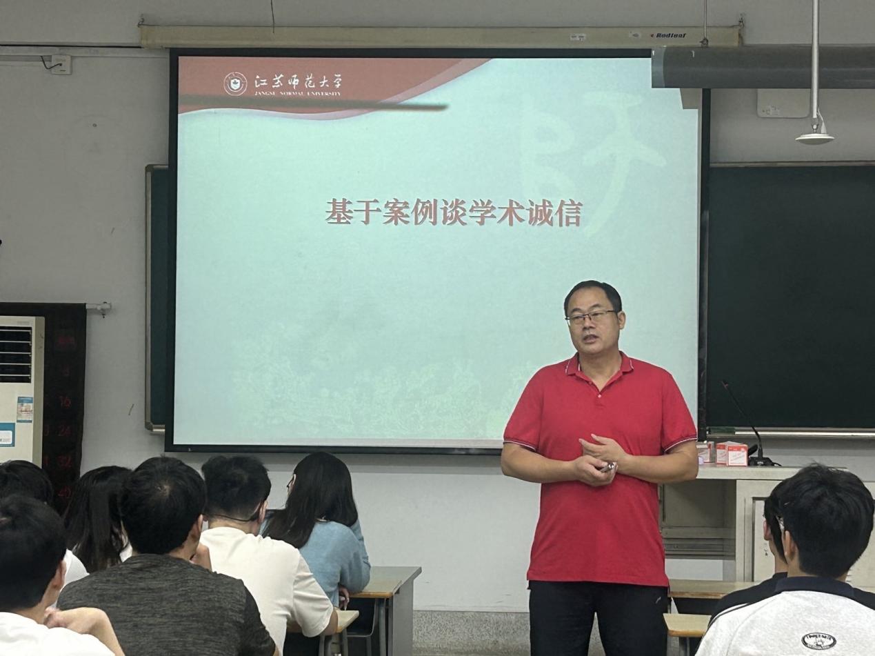 马克思主义学院王本贤教授为2025级研究生新生作学术诚信专题教育。讲座结合国内外学术不端典型案例,系统阐述了遵守学术规范、恪守科研伦理的重要性。围绕数据引用、成果署名等常见问题进行了细致讲解,为同学们提供了清晰实用的学术实践指引。他还针对论文写作、数据处理等环节的常见问题提出具体建议,引导新生牢固树立科研诚信意识,为今后的学术生涯奠定坚实道德基础。整场讲座内容详实、案例生动,有效引导研究生新生从入学伊始即筑牢学术道德底线,为今后的科研之路夯实诚信基础。