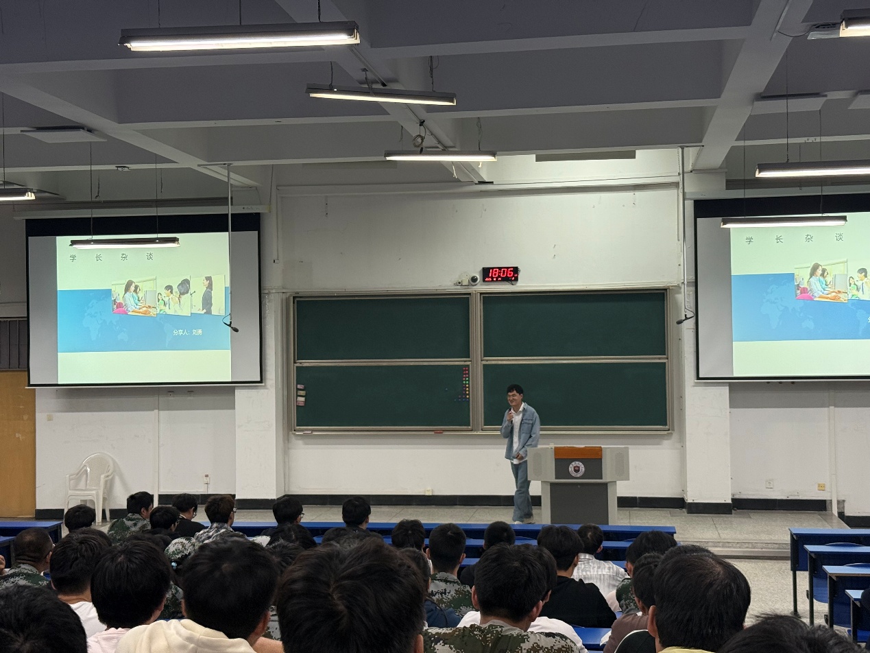 学院特邀2022届优秀毕业生刘勇返校,为2025级新生带来一场内容丰富的经验分享交流会。刘勇以自身大学经历为切入点,围绕课程学习、科创竞赛、专业工具使用、考研就业等多个方面,分享了宝贵的心得与体会。他鼓励同学们积极拓展学习路径,保持主动探索的精神,明确目标方向,不断提升自我。此外,刘勇还就入学初期在生活适应与兴趣发展等话题,与新生们进行了交流互动。