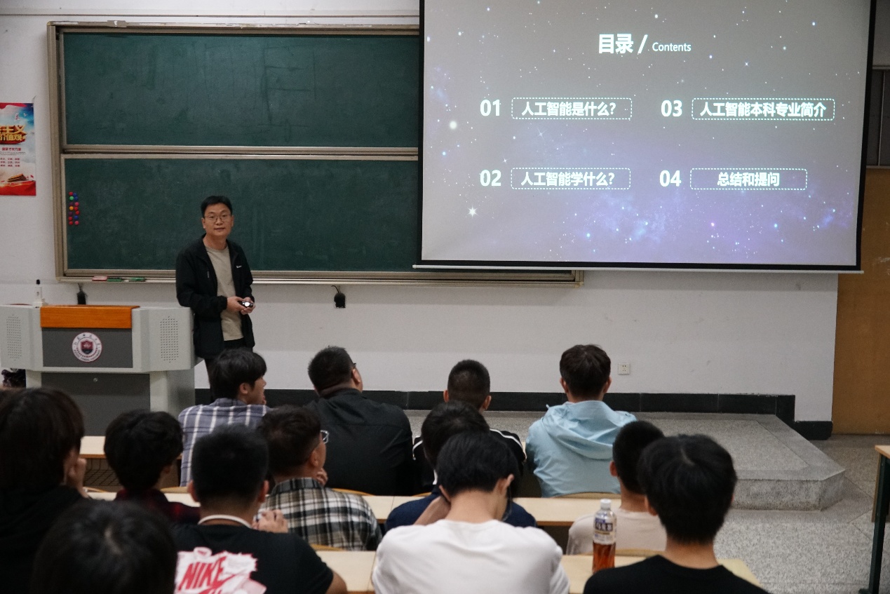 电气学院人工智能系主任张兆军副教授为人工智能专业本科生开展了专业教育。讲座围绕“人工智能的定义”“专业内涵解析”以及“人工智能学什么”三大主题展开。张兆军从人工智能的发展历程讲起,结合当前科技发展趋势,系统介绍了该领域的演进脉络,并通过生活中常见的人工智能技术应用实例,深入浅出地阐释了人工智能的主要研究方向与发展前景。在总结与提问环节,同学们积极互动,老师也一一予以耐心解答。