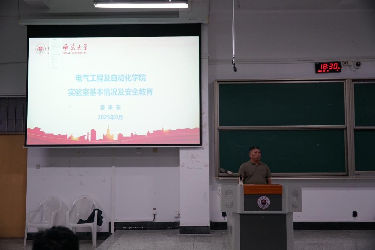 电气学院实验中心主任姜来东为新生开展了实验室安全教育专题讲座。讲座中,姜来东首先系统介绍了实验室安全的基本内容与关键注意事项,强调了实验室实行的“三级”准入管理制度。随后,他围绕实验室中的水电安全、消防安全以及危险化学品的规范使用等方面进行了详细说明,并对高温高压设备、气瓶、离心机等高风险仪器的操作规程作了深入讲解。他特别指出,在进入实验室前,必须全面了解所在实验室涉及的危险源和关键设备,做到提前知晓、心中有数。同时,他鼓励同学们持续加强安全知识学习,培养严谨规范的实验操作习惯,杜绝侥幸心理,认真遵守每一项安全规定,切实保障自身和他人的安全。