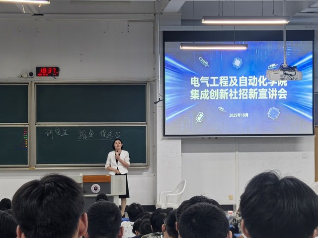 集成创新社指导教师徐止政向同学们介绍了社团功能和活动安排。该社团是电气学院重点发展的学生创新创业类社团,旨在通过开展与专业相关的项目制训练、带领学生参与企业一线生产等方式,将理论学习与学科竞赛、社会实践紧密结合,全面提升学生的专业素养、工程实践能力和创新思维,培养创新型工程应用人才。