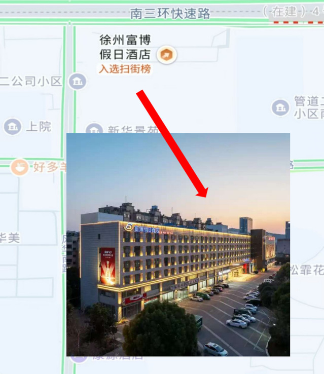 导航地址:江苏省徐州市风华南路1号富泊湾广场A座(徐州富博假日酒店)