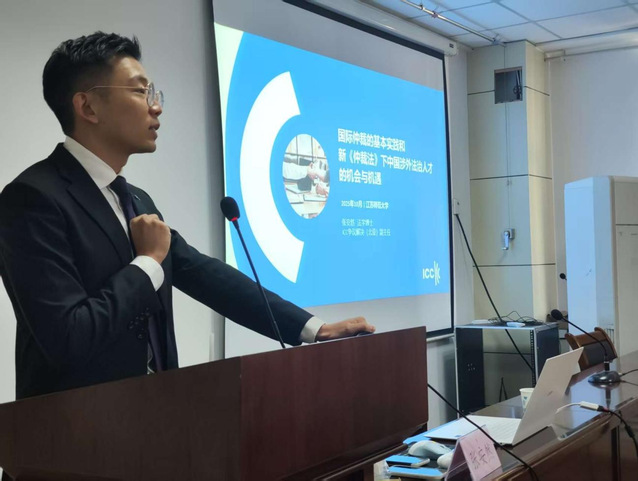 2025年10月21日下午,国际商会(ICC)北亚地区争议解决业务副主任张安然博士应法学院邀请,为师生带来了一场题为“仲裁法下中国涉外法治人才的机会与挑战”的专题讲座。本次讲座由江苏师范大学法学院国际法教研室主任刘恺教授主持,法学院25级研究生、敬文书院涉外法治实验班本科生及部分教师参加。