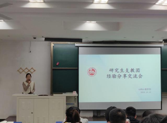 16机61班董梦园同学顺利成为学校第22届研究生支教团成员,她向同学们介绍了研究生支教团的基本情况、基本要求和选拔流程,对研支团申请条件和选拔流程做了详细介绍。她指出研支团是用“志愿加接力”的方式达到保研,也期待同学们加入到研支团,用一年不长的时间,做一件终身难忘的事的。