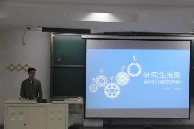 16机51班孙德奇同学从什么是保研、如何才能保研、个人经验总结、个人情况分析四个方面与大家做了交流,他以时间顺序为切入点,讲解了从6月至9月保研经历,着重介绍了推免条件和各种材料的准备,他特别提醒同学们要意识参加专业性强、含金量高的专业竞赛,加强英语学习。结合本科成绩单的展示,孙德奇建议大家尽可能的提高专业成绩,增强实践能力,学会合作交流,通过学生工作提高综合能力。