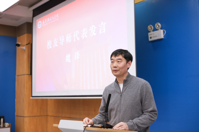 娄峥嵘副校长以马院师长的身份致辞,对各位校友重返母校表示热烈欢迎。她与大家共同回顾了在校期间难忘的学习生活点滴,从钟楼的晨光到玉泉河的夕照,从教学楼内的思想碰撞到图书馆中的潜心钻研。她指出,这些共同的记忆构成了珍贵的“芳华岁月”,话语中既流露出师长对学生的真挚牵挂,也饱含着看到大家载誉归来的欣慰之情。
