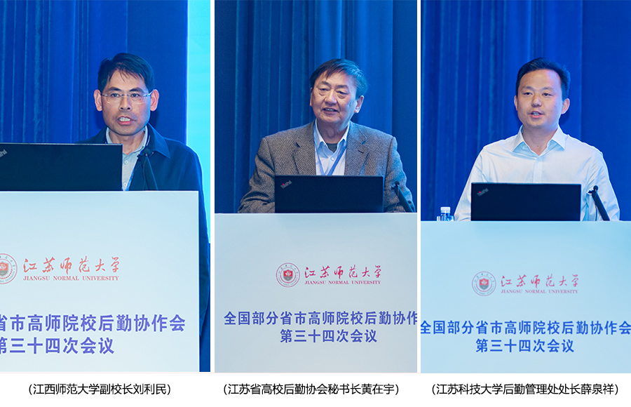 本次会议特邀江苏省高校后勤协会秘书长黄在宇、中国矿业大学副校长黄军利、江苏科技大学后勤管理处处长薛泉祥分别围绕《解读教育部办公厅关于高校后勤高质量发展文件》《智慧引领·助力后勤服务高质量发展》《教育强国背景下高校后勤建设探索》作专题报告。黄在宇系统梳理了近年来教育部关于高校后勤工作的政策脉络,深入解读了教育部文件的核心要义。并指出高质量发展是新时代高校后勤的主旋律,必须坚持问题导向与目标导向相统一,推动后勤从“保运转”向“强治理”跃升。黄军利向大会分享了学校后勤在信息化建设方面的探索与成效。他结合校园能源监管平台、智能报修系统、智慧餐饮管理等具体案例,展示了大数据、物联网、人工智能等技术在提升服务响应速度、优化资源配置、降低运行成本中的实际应用。薛泉祥结合“党建引领”、“质量为先”和“育人为本”三个方面指出增强思政引领力和民生保障力是高校后勤的双重使命与职责,要聚焦“一融双高”,建成“健康、高效、稳定、有序”现代化高校后勤体系。
