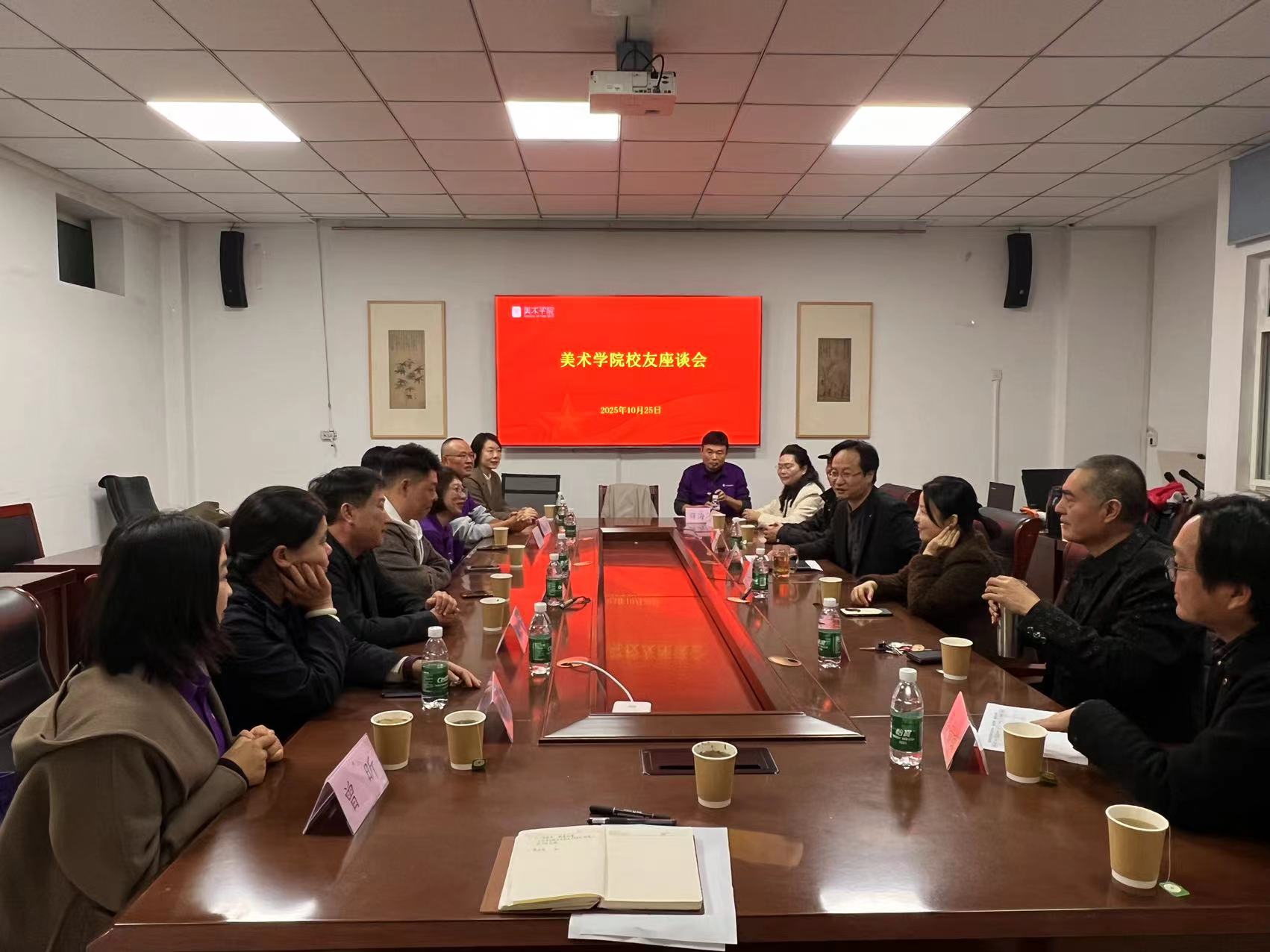 随后举行的“校友共话发展”座谈会由美术学院院长蔡芝竖主持,2005届校友时任班主任、现校研究生院副院长徐媛媛,美术学院毕继民、马榕君、张勤、蔡增斌、赵冬霞等教师代表共同参与交流。校友们重温求学时光,感恩母校培养,并就课程优化、实践教学和校友资源共享等议题积极建言,现场气氛热烈。