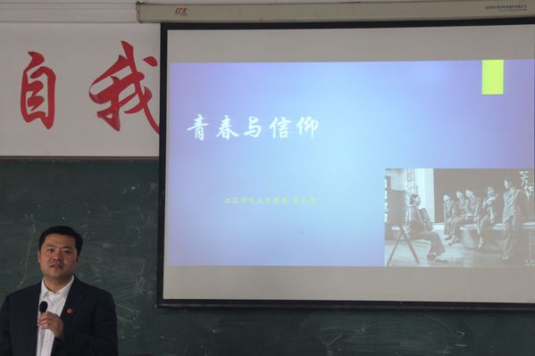 葛书记以“青春与信仰”为主题,通过引用一系列经典的电影巨作向同学们叙述了什么是信仰、为什么人要有信仰、共产主义是怎样的一种信仰、为什么选择共产主义作为自己的信仰、作为青年如何守护自己的信仰等五个方面,葛书记解释到信仰就是经过自己理性思考过后,深深信服,始终坚持并愿意为之付出代价甚至是生命。葛书记还分析了人需要信仰的主要原因是信仰能解除人们对未知的恐惧,对未来的人生规划有一定的导向作用。最后,葛书记鼓励同学们做到尽学生本分、报国家情怀、怀济世之心、守慎独之道四个方面,并强调拥有信仰是党员的必备条件,大家要坚信共产主义信仰早日成为一名优秀的共产党员努力。