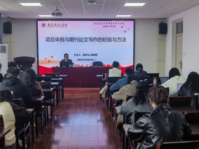 为进一步加强我院有组织科研工作、提升教师科学研究能力。10月29日下午,马克思主义学院青年学术沙龙(2025年第1期)在16#302报告厅举行,本次沙龙的主题为“项目申报与期刊论文写作的经验与方法”,由马克思主义学院副教授陈群志主讲,徐彬副院长主持,二十余位青年教师参加了此次活动。