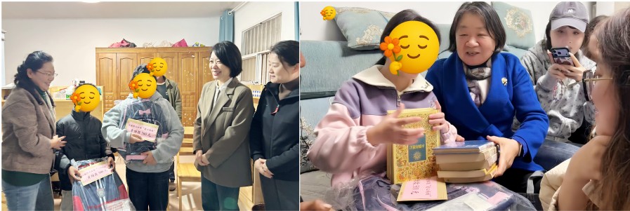 仪式上,裴笛与张天然共同为“江苏师范大学妇联爱心妈妈工作站”揭牌,标志着校地共建的关爱平台正式落地。美术学院张勤老师作为爱心妈妈代表发言,表达了志愿者们守护童心、传递温暖的责任和担当。随后,爱心妈妈们为孩子们送上助学金和精心准备的文化用品爱心包,将温暖与关怀亲手传递到每个孩子。仪式结束后,志愿者们分组前往结对儿童家庭开展入户走访,深入了解孩子们的生活现状、学习需求与内心“微心愿”,以真诚沟通搭建情感联结,为后续精准关爱筑牢基础。