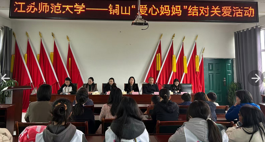 10月25日上午,江苏师范大学妇联与铜山区妇联在单集镇政府会议室,联合举办“爱心妈妈暖童心 校地结对共护航”结对关爱活动启动仪式。这既是落实上级妇联加强留守儿童与困境儿童关爱工作部署的具体举措,也是校地协同育人模式的创新实践。铜山区妇联主席张天然、单集镇镇长韩向坤出席活动,校妇联主席裴笛带领学校20名爱心志愿者代表,与单集镇10名困境儿童正式结对帮扶。