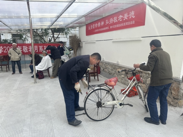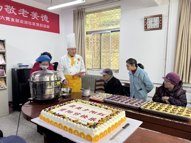 党员同志以及志愿者,用实际行动诠释雷锋精神。活动中,有的陪伴老人聊天,听他们讲述过去的故事,让他们的回忆有倾听者;有的清洗眼镜、修理自行车,为老人提供便民服务;有的为老人理发,老人们的精神面貌焕然一新,脸上都洋溢着幸福的笑容。同时,党员和志愿者现场为老年人制作了“重阳糕”,一块色彩斑斓的重阳糕,搭配一份甜蜜细腻的奶油蛋糕,共同构成了这场重阳节活动的“快乐源泉”。活动接近尾声时,工作人员和志愿者们齐声祝愿老人们健康长寿,尽享幸福时光。