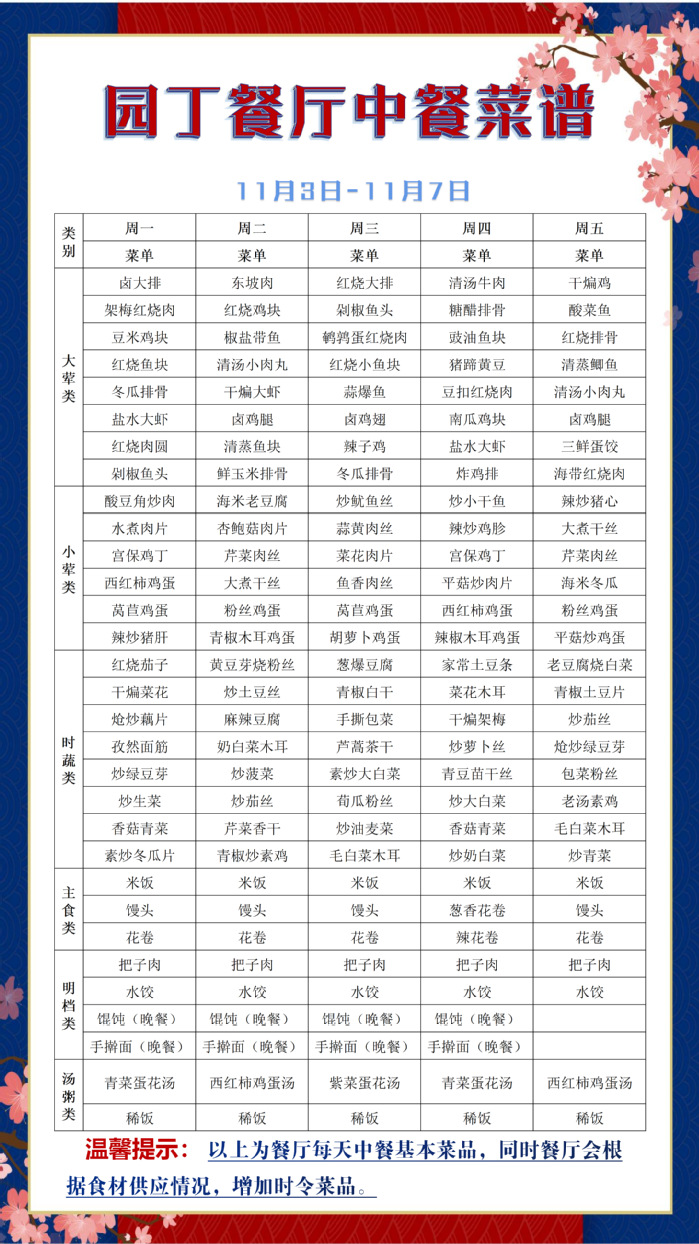 根据大数据分析,餐厅11:25-11:35、11:45-11:50、12:00-12:05三个时间段为就餐高峰期,为了减少排队等待时间,老师们可以选择错峰就餐。