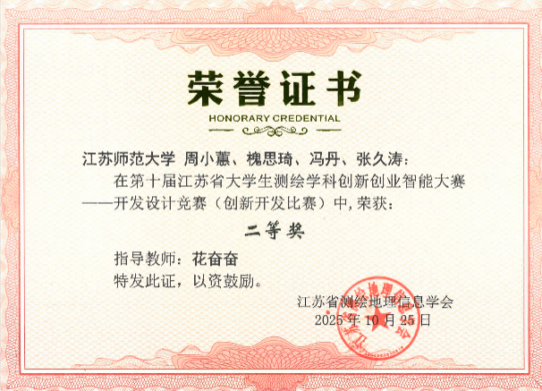 作为江苏省教育厅白名单赛事,江苏省测绘学科双创智能大赛已成功举办多届,是省内测绘领域中极具影响力的双创交流平台。本次大赛设有开发设计竞赛、测绘仿真技能竞赛和测绘技术应用竞赛三大类,竞争十分激烈。在备赛阶段,我院高度重视,组建了资深教师指导团队,针对各类赛项开展专项培训,全程参与选题论证与方案优化。参赛学子们在课余时间全心投入,反复打磨作品,最终获奖数量与质量均位居全省高校前列。