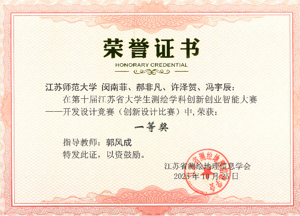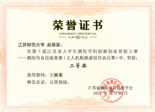 近日,第十届江苏省大学生测绘学科创新创业智能大赛近日在江苏海洋大学圆满落幕。我院在梁亮副院长、王树果老师及林明华等教师的带领下,积极参赛,凭借扎实的专业基础和卓越的创新能力,再次取得优异成绩,荣获一等奖6项、二等奖10项,充分体现了我院在测绘和遥感学科人才培养及双创教育方面的显著成效。