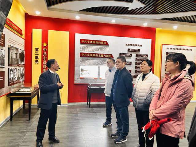 全体党员同志在讲解人员的带领下,通过历史图片、文献素材、影音资料等全面回顾了丰县地区特别是张后屯村在抗战时期的革命历程。抗日战争时期,丰县是中共湖西地委前身苏鲁豫特委的成立地。丰县首羡镇张后屯村地处苏鲁两省四县交界,属湖西革命老区基点村,县委在此发展组织、传播真理、唤醒民众,当地群众积极踊跃参军支前,掩护革命干部,养育军烈子弟,用鲜血和生命铸就了军民鱼水情。张后屯也因此成为丰北抗日根据地的政治与军事中心,赢得了“湖西小延安,红色张后屯”的美誉。