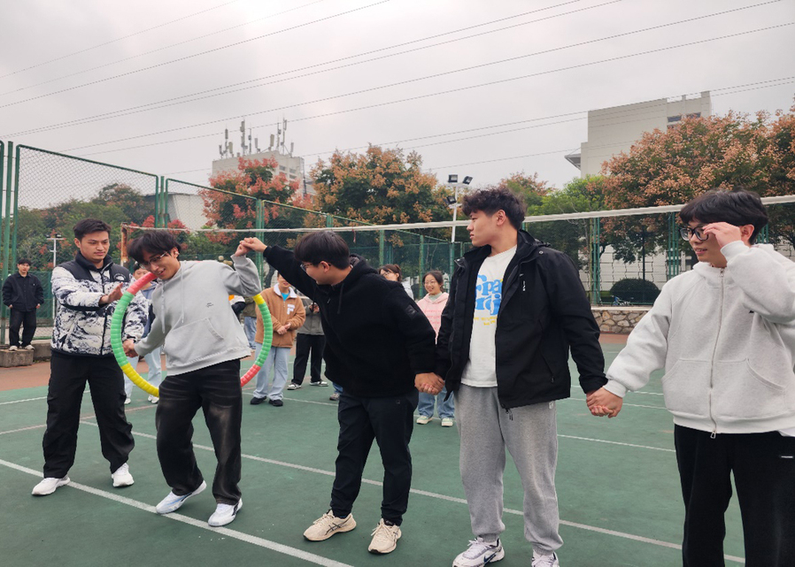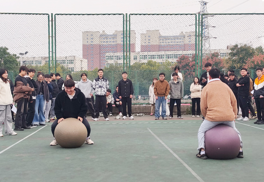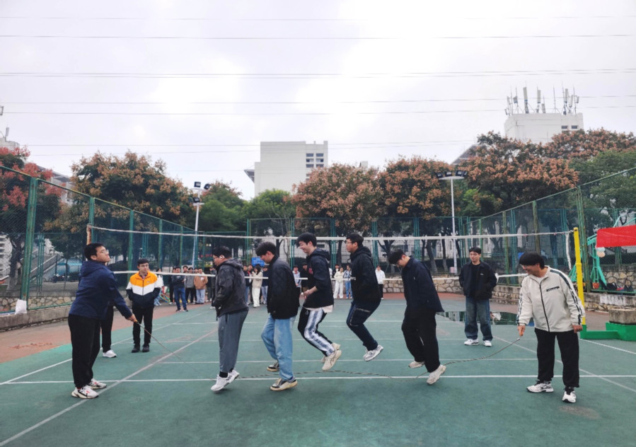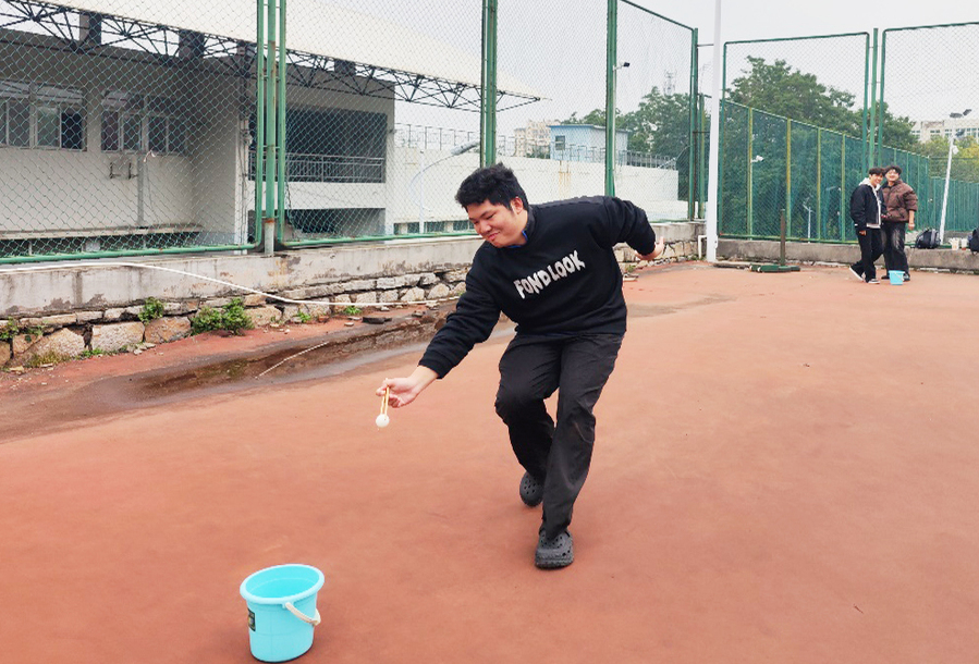 本次活动精心设置了“趣味跳大绳”“筷子夹球”“一圈到底”及“企鹅漫步”四项趣味比赛。赛场上,队员们身影灵动、配合默契,场边加油声此起彼伏,气氛热烈。“趣味跳大绳” 中,队员们分工明确,摇绳者把控节奏,跳绳者身姿轻盈,彼此间默契的配合引来阵阵喝彩;“筷子夹球” 考验个人手眼协调能力,队员们全神贯注夹起小球奔跑传递,趣味十足;“一圈到底” 节奏紧凑,各队成员手拉手肩并肩,呼啦圈在队伍中灵活穿梭,完美展现了团队协作的魅力;“企鹅漫步”环节,参赛者模仿企鹅步态前行,憨态可掬的身姿将活动气氛推向高潮。同学们表示,在紧张的学习科研之余,参加这样的集体活动不仅能放松身心,还帮助同学们尤其是新生迅速融入了学院大家庭,结识了许多志同道合的朋友。