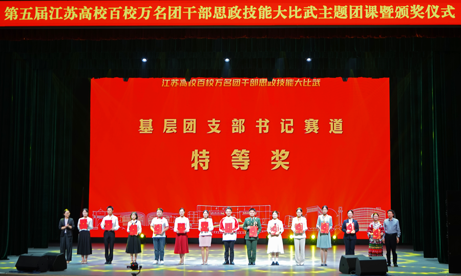 9月28日,由共青团江苏省委联合中共江苏省委教育工委、江苏省社会科学院、江苏省学生联合会共同举办的第五届江苏高校百校万名团干部思政技能大比武决赛在中国矿业大学举行。经过决赛评审,我校荣获特等奖1项,一等奖2项,二等奖4项,三等奖3项,获奖总数位列全省第二。