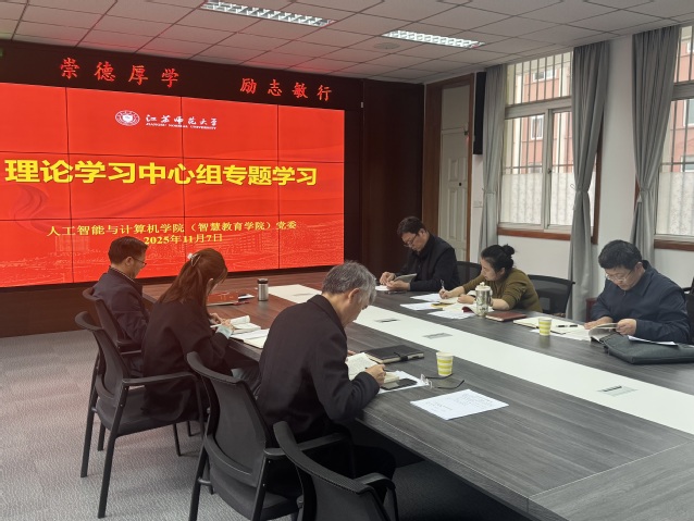 11月7日下午,人工智能与计算机学院(智慧教育学院)党委理论学习中心组在泉山校区5号楼教学资源保障中心207会议室开展专题学习。会议由学院党委书记王帆主持,党委理论学习中心组全体成员参加学习并作交流发言。
