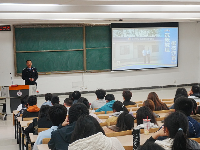 为进一步提升学院师生的识诈反诈能力,11月5日下午,江苏圣理工学院-中俄学院在泉山42号楼阶101教室举办“反诈护航青春”第二期防诈反诈专题培训班。此次培训特邀四级高级警长、江苏师范大学警务室驻校民警周广文主讲,学院相关领导、教职工及学生干部近300人参加。活动通过法治辅导员聘任、专家宣讲、宣传员授聘等环节,为全院师生构建多层次反诈防护体系,切实提升校园反诈免疫力。