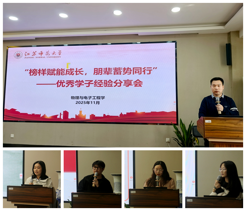 为帮助同学们明确学业方向,汲取榜样力量,11月8日下午,物理与电子工程学院在7号楼327教室成功举办“榜样赋能成长 朋辈蓄势同行”优秀学子经验分享会。作为物电学院职业发展服务月系列活动之一,本次分享会邀请五位已成功推免至知名高校的优秀学子进行经验分享。