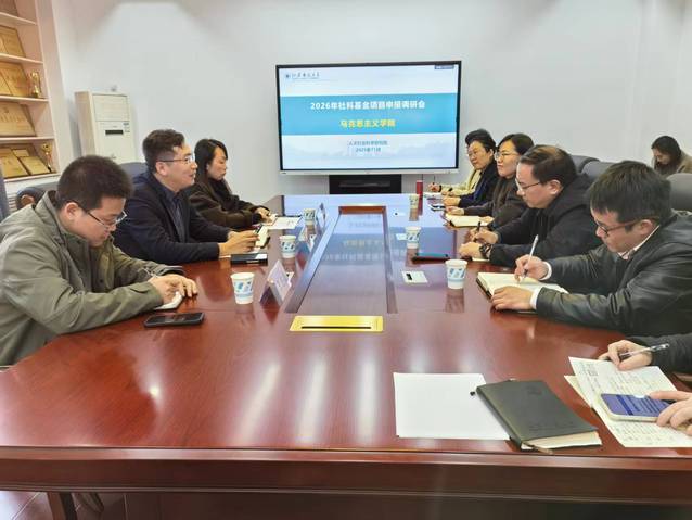 随后,王世进副院长一行与学院有在研项目的教师和计划申报项目的骨干教师就相关问题进行了深入交流。最后,王冠群院长代表学院表示感谢,并表示“十五五”期间马克思主义学院要加强学院科研工作,加大国家社科基金项目的组织和申报,同时也希望人文社会科学研究院能够关注并支持学院的发展。