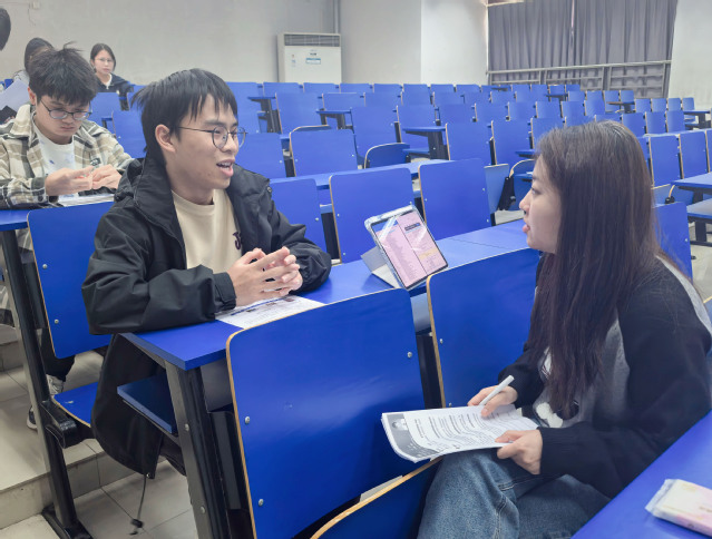 同学们在互动环节中积极提问,就岗位晋升周期、技术研发难点等关注问题与企业代表进行交流。会后开展了首轮面试。