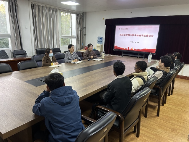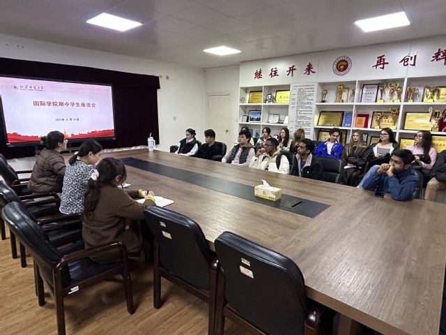 为深入了解留学生在校学习与生活状况,进一步提升管理服务水平,11月10日下午,国际学院在210会议室组织召开本学期期中教学检查学生座谈会。会议由国际学院副院长任欢欢主持,教务办公室雷阳阳老师、学工办公室陈麒羽老师以及各班级17位学生代表参加了此次会议。