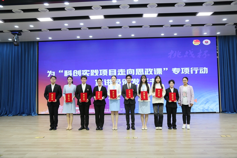 会上,校党委常委、副校长商亮为“挑战杯”竞赛专家库入库教师颁发聘书,团省委高校工作部部长卜路为“科创实践项目走向思政课”专项行动宣讲员颁发证书;参会师生共同观看了我校第十九届“挑战杯”竞赛参赛回顾视频;部分国赛参赛项目进行了项目汇报展示;参赛师生通过《挑战归来话挑战》主题访谈形式分享了他们在竞赛中淬炼成长的难忘经历,展现了勇于创新创造、矢志科创报国的责任与担当。