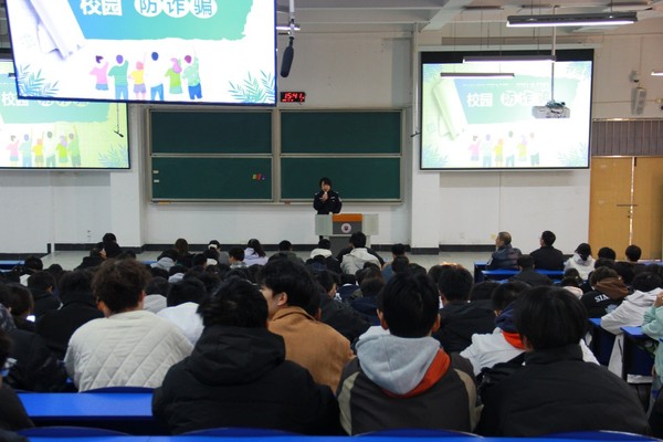 活动伊始,民警以“身边事”为切入点,结合当前诈骗高发类型,逐一拆解网络刷单返利、虚假投资理财、游戏账号交易、校园贷、冒充客服退款等常见骗局,详细剖析诈骗分子利用学生社会经验不足、防范心理薄弱等特点实施诈骗的完整链条。触目惊心的案例让在场同学深刻感受到电信诈骗对个人财产和身心健康的双重损害,进一步绷紧了“防骗之弦”。