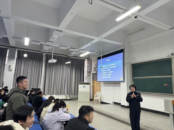 最后民警介绍了国家打击电信诈骗的系列举措,让同学们了解到反诈工作的坚实保障,同时呼吁全体同学主动参与全民反诈行动,不仅要自身提高警惕,还要向家人朋友普及反诈知识,争当校园反诈 “宣传员”,共同织密反诈防护网。